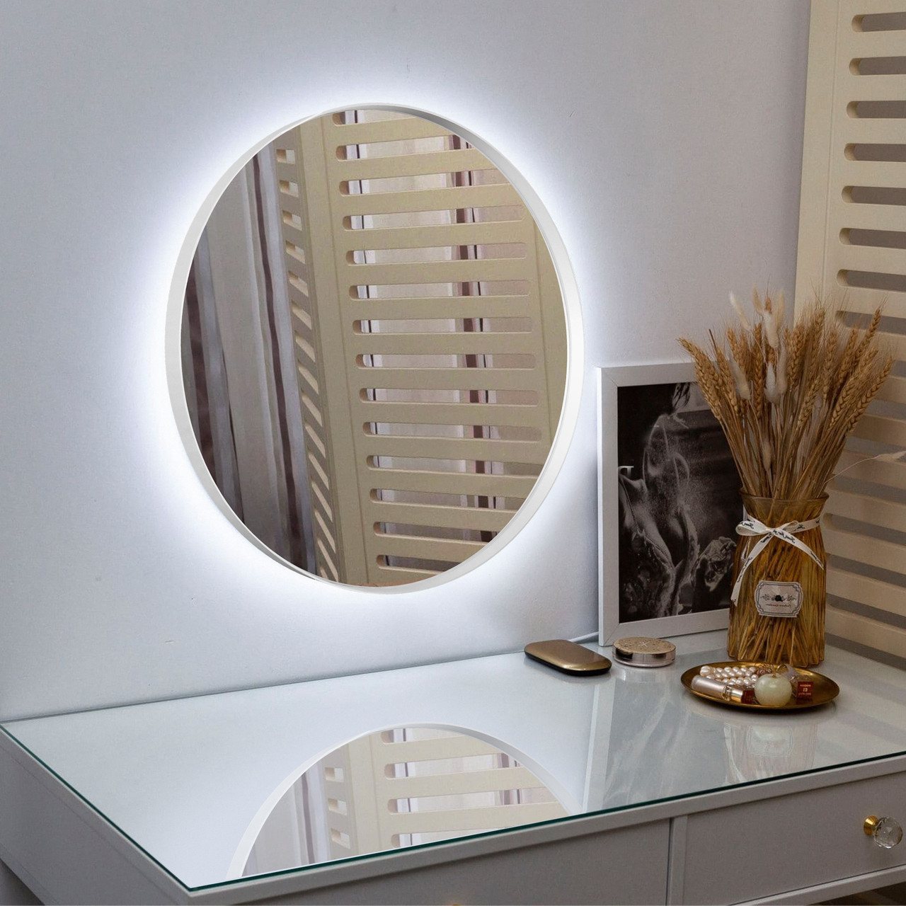 Дзеркало настінне кругле 60 см з підсвічуванням у металевій рамі. Дзеркала для передпокою, вітальні, будинку лофт Білий